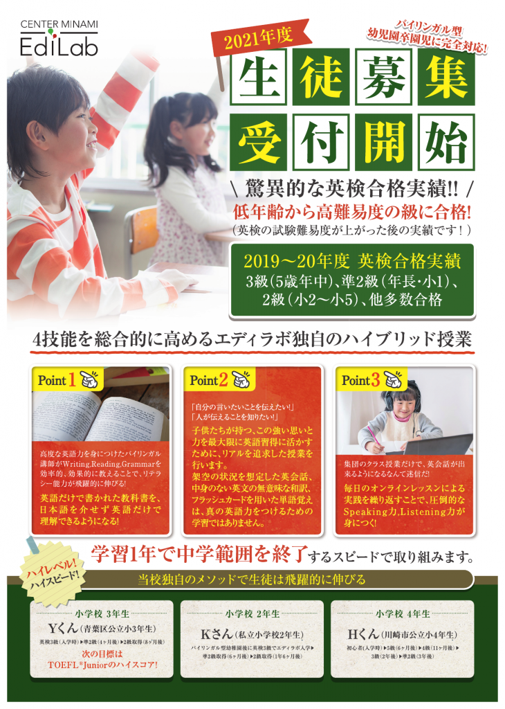 2021年度小学生クラス新規生徒募集開始!!